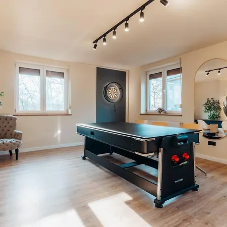 Durante su estancia en la Villa Party House - Private Events & Birthdays Breslavia, los huéspedes pueden practicar ping-pong y dardos o visitar el Parque Skowroni, situado a unos 2 km. Esta villa, que ofrece a sus huéspedes WiFi y un aparcamiento privado gratuito, está a unos 15 minutos en coche del Parque Acuático de Wroclaw.